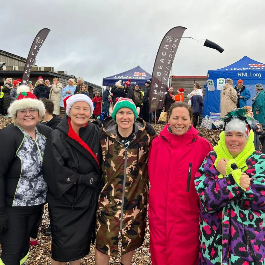 There have been two recent fundraising sea dips in December and well done to Leah Simms & Wendy Kane who took the plunge at Shoreham and then Leah Simms, Wendy Kane, Ness Green & Mouse Reilly did the same at The Beach in Littlehampton. Leah has had a good start to her fundraising for the RNLI – if anyone is able to support her in her quest; Leah’s fundraising page is HERE There could be a chance that some of our readers will finish Leah’s report and think “Oh that would have been fun to do”? Well then, you are not too late 🙂 There is the traditional Boxing Day dip at The Beach Cafe Littlehampton @ 9:30am