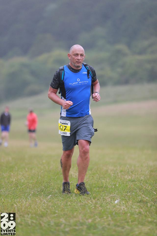 The first 14 miles were ok but lack of running long distances regularly started creeping in at Harting Down (16 miles) and my pace started slowing I had trail shoes on which became uncomfortable and ended in 2 blisters – 1 on each heel.