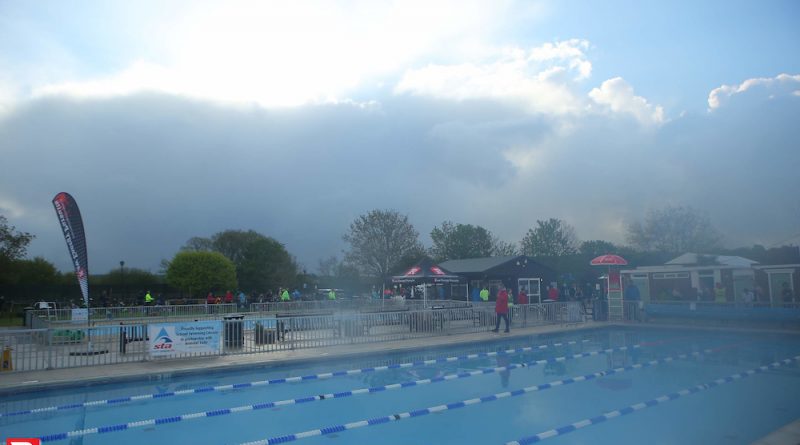 The sky in the above banner photo sums up the weather perfectly – warm sunny weather for a short period, often dark, cloudy with drizzle, and at other times torrential downpours leaving everyone soaked with bikes arriving back in transition covered in grime. The back to race rules meant there was a significantly reduced field but the upside was the Lido was completely covered in bike racking providing plenty of socially distanced space for all competitors. (thanks to Sussex Sport Photography for the pics.)