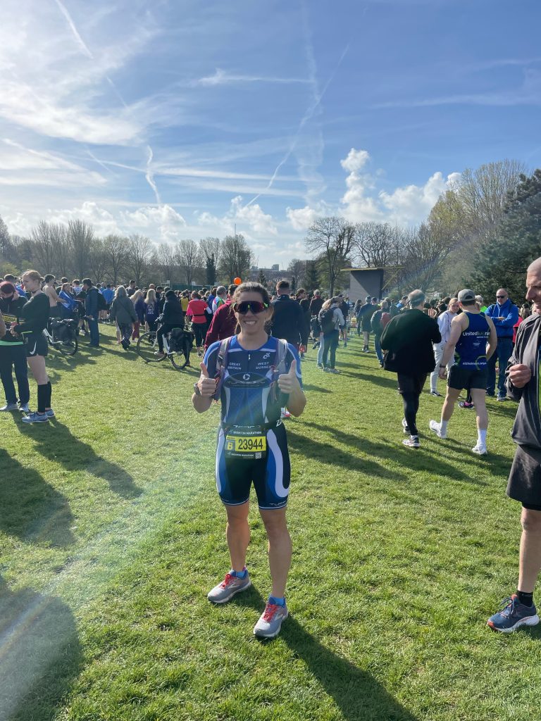 “I’ve taken part in this event many, many times before as it’s local and a very easy entry.. and the marathon.. and so with loads of tuffs going it was sure to be extra special and helpful with training runs. Alas with many tuffs dropping out or deferring it was left to a few brave souls to fly the flag and so with my training all done and race ready … boom.. I fell Ill with man flu a few days before the start. It gave added pressure as it was to late to defer and all concerned had put to much effort and sacrifice in. If that wasn’t bad enough our morning train was cancelled so a call to arms was required & so lining up with my fellow semi elites I felt fragile and fraudulent as while I qualified for my position, I wasn’t well enough fulfil my potential. This was a real shame as the weather was perfect. I started well enough but as I was reminded “the marathon starts at mile20” as so it was as my thighs cramped and my feet blistered & everything hurt. If it wasn’t for the wonderful atmosphere and crowds I would still be there now! It really did keep me going to cross the line in 3h22 and reminded me why I love the big races.