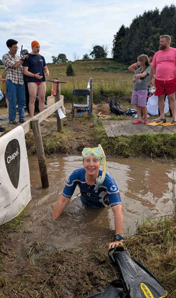 The male world record stands at 1 min 12.34 sec (Neil Rutter, 2023) and female 1 min 22.56 sec (Kirsty Johnson 2014) for 120 yards. I manage a 2:26, which is 7th in the >50 female category (with the winner at 1:59 in a field of 35, so I feel happy enough with my time) . I can highly recommend the Bog weekend for a relaxed, fun atmosphere and ideal for a big group of Tuffs looking for their first Bogathlon or snorkel!