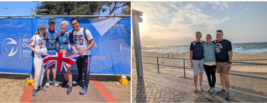After Jenny qualified in 2024, I was encouraged to try to qualify as well, which I successfully did at the Cow Man’s CalfMan Olympic triathlon BTF qualifier event. There began our World Championship journey. The reality was that neither of us really had any idea what we were doing or what we had got ourselves into, and we relied heavily on the wisdom and experience of Colin and Sue Simpson. If it had not been for their encouragement and support, we would have made far worse mistakes than just booking the wrong dates for the outbound flights…
